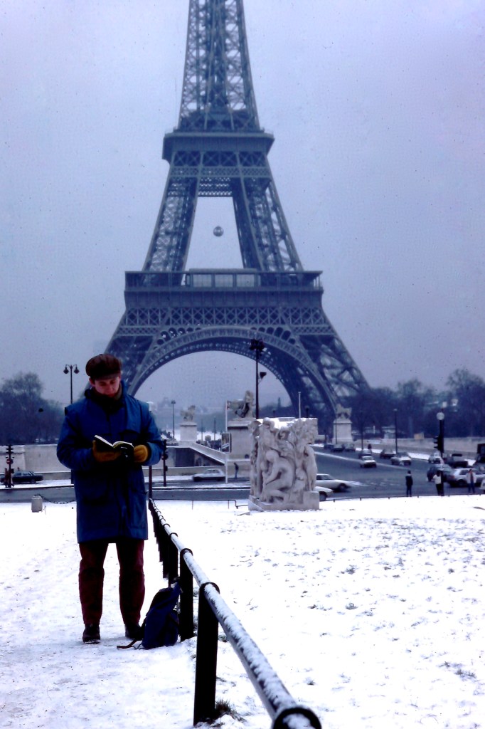 For the first four months of 1985, Liz and I lived in Paris, unfortunately during the coldest winter since 1944. Liz worked as an au pair, and I found a job teaching Italian to some American students, and other than concert going, my musical experiences were confined to busking in the Paris Metro. I devised theatrical techniques for earning good money in the right place at the right time. I would personally like to thank the nun and the lady in the mink coat with the poodle, who respectively dropped a packet of biscuits and a 50 franc note into my hat. I also enjoyed busking occasionally in the forecourt of Notre-Dame Cathedral. I read Victor Hugo’s The Hunchback of Notre-Dame in a small park in full sight of the Cathedral.