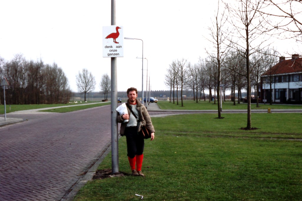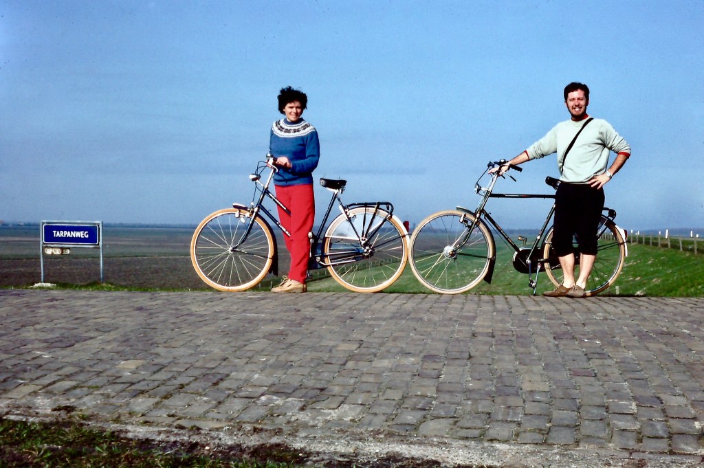 In late March/early April 1985 we took a train from Paris to spend 3 weeks in Amsterdam. We visited friends there and also in Swifterbant, Leiden, Delft and Groningen. We camped a few nights at the isle of Schiermonnikoog, a wonderful natural conservation reserve with lots of birdlife. On April 4 we cycled from Swifterbant to the Boswachterij Roggebolzand (forest) and back. In Delft, as in many Dutch cities, we enjoyed many walks and the ringing of the carillon.