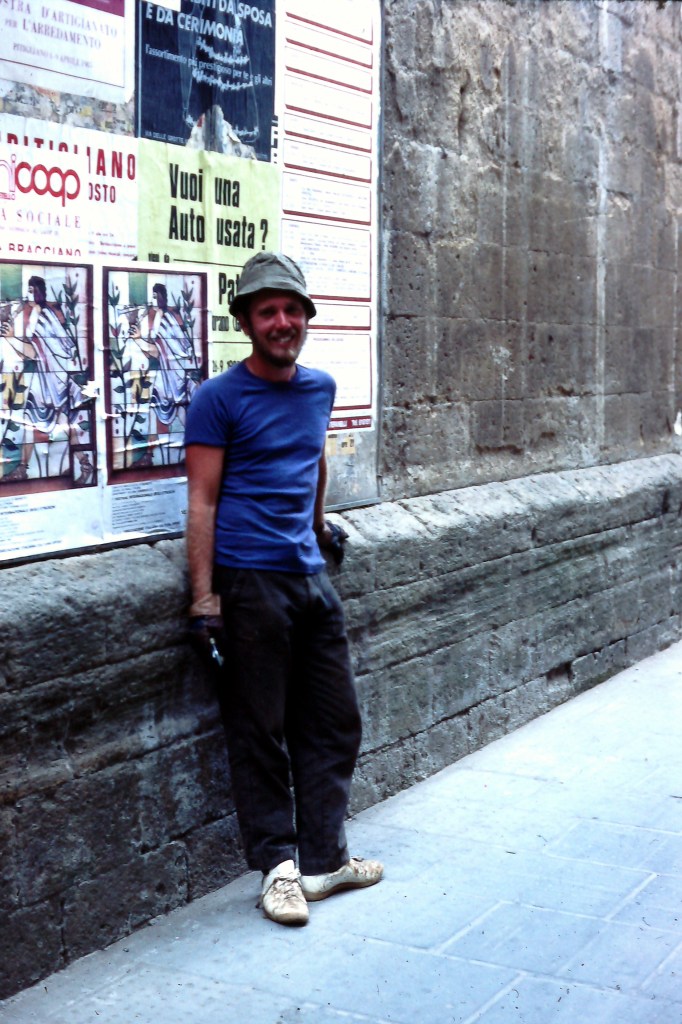 On July 13 we were back in Pitigliano for another four to five months. This included helping out with the Settimana Musicale which ran from late August until early September. Until we found regular accomodation, we camped in a tent for a few weeks on the outskirts of Pitigliano in a private garden and practised music in a nearby ancient Etruscan cave (cantina). We then stayed temporarily with kind English friends Alan and Sue in their Via Zuccharelli apartment, conveniently next to a bakery (Forno del ghetto) which made delicious breads and pastries. Eventually we took up more permanent accomodation with Nilda, a village elder, living alone, who allowed us exclusive access to an entire floor of her house in the ancient capisotto end of the village, Via Antico Pretorio, 9. Here Liz enjoyed taking a group of local shop keepers (postal workers, butchers, barber, bus driver etc) for regular English lessons.